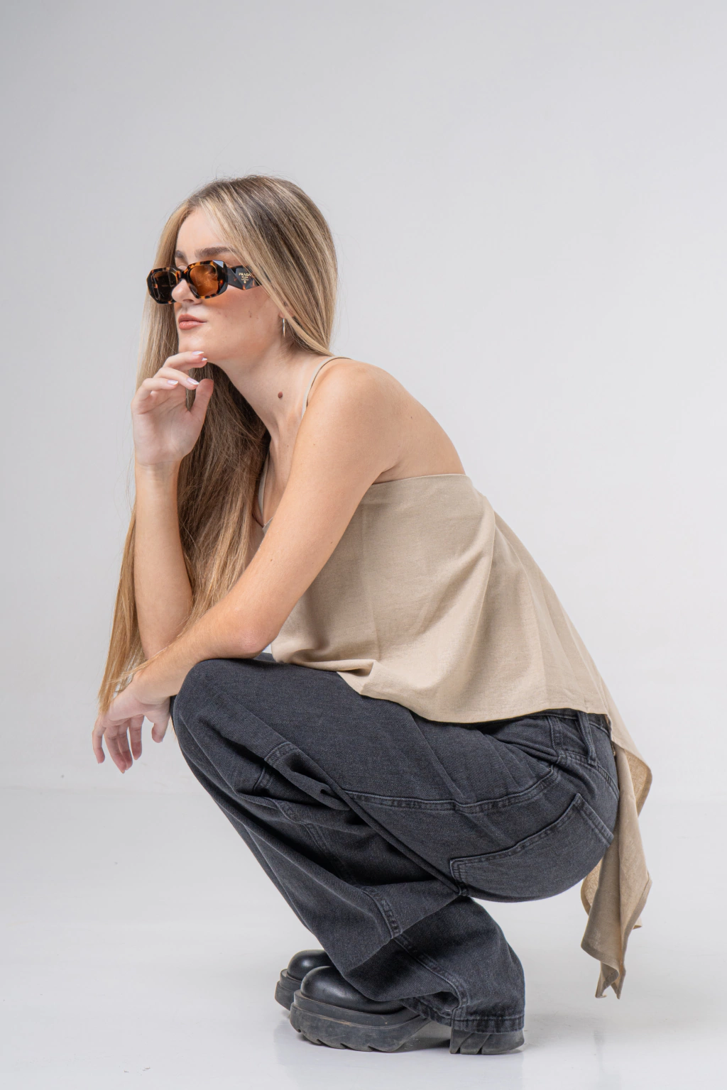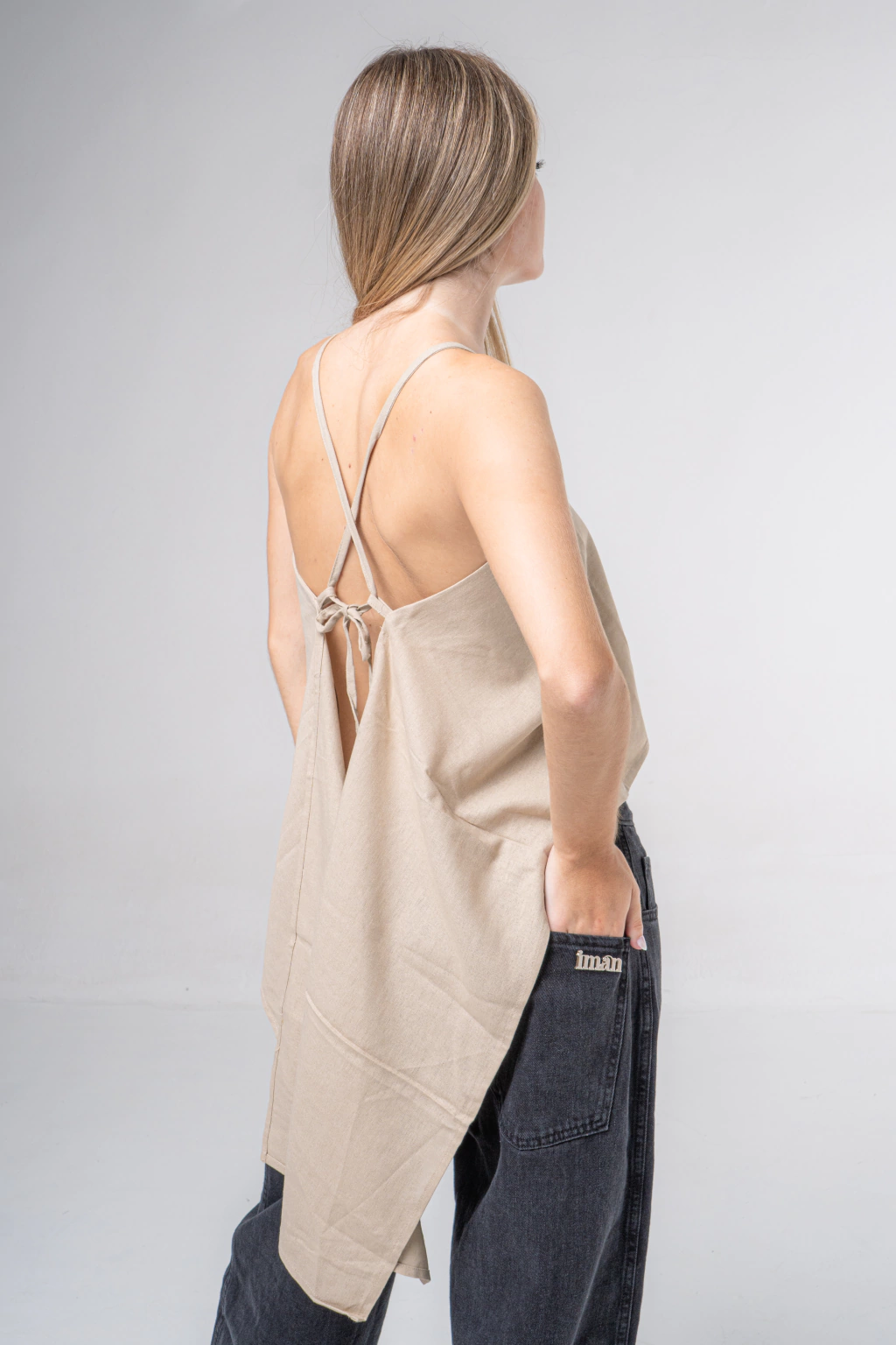Top rectangular con breteles para atar, fresco y ligero para el verano.